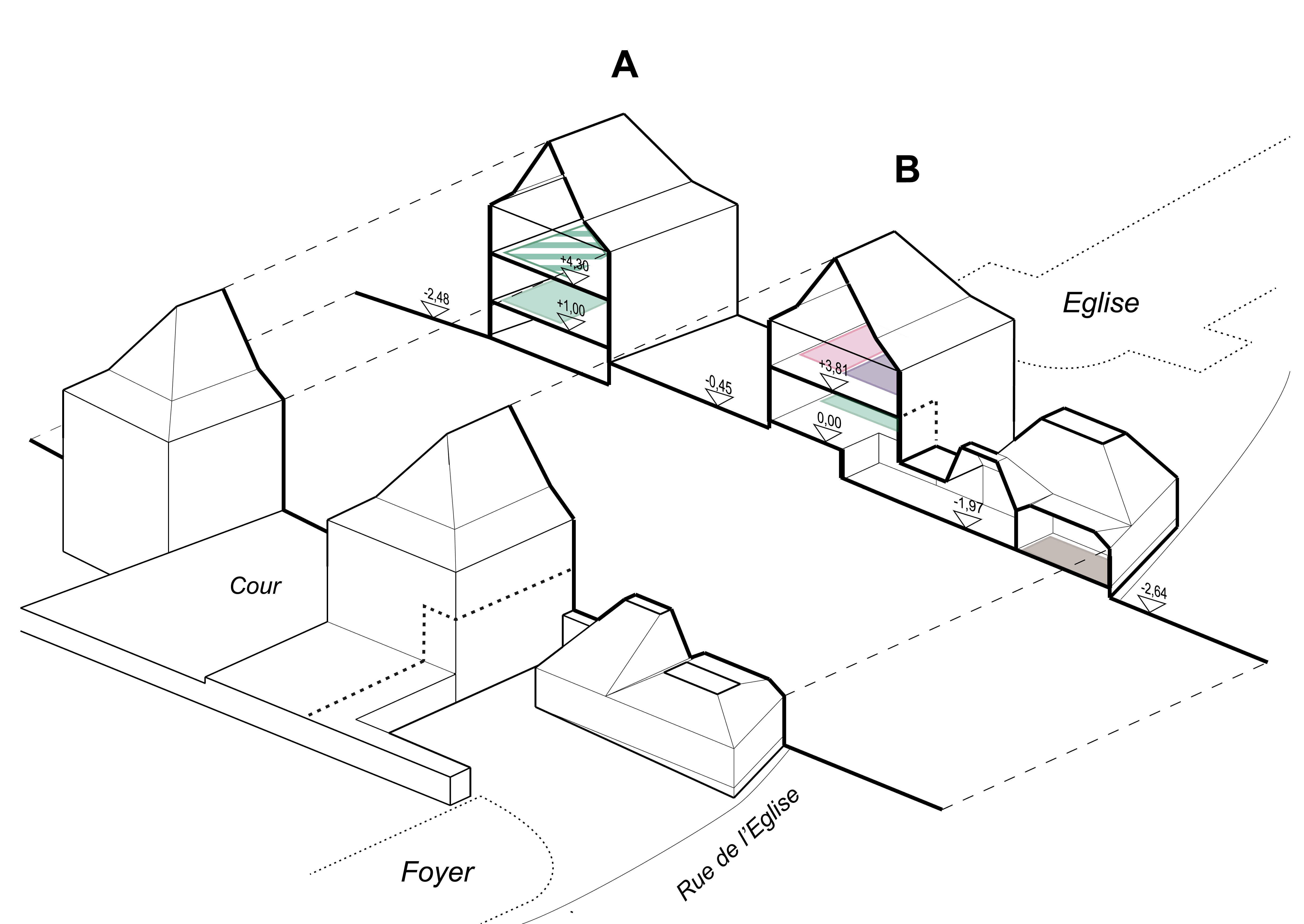Le projet consiste en la restructuration des bâtiments existants et la construction d’un périscolaire et d’une extension qui accueillera la maternelle.